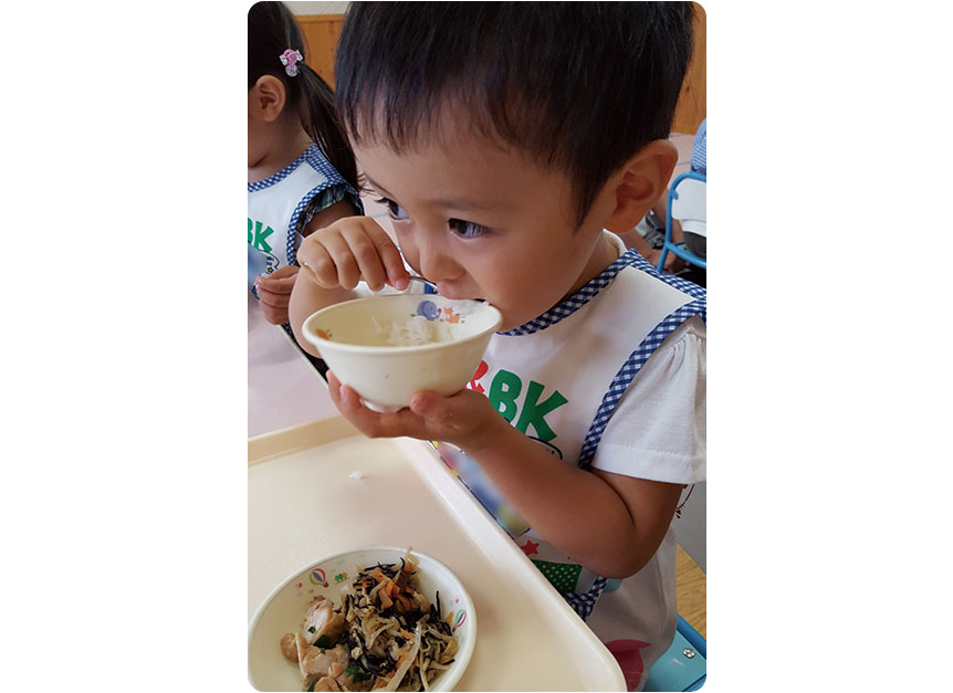 0,1,2歳児は、一人ひとりの子どもに対し、特定の保育者が食事・おむつ替えなど生活部分を担当し、きめ細かい丁寧な保育を行います。